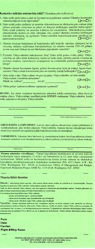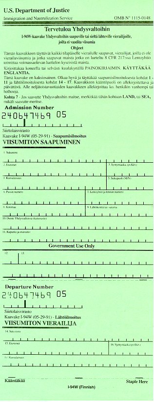 Tällaiset tiedot vaatii U.S. Department of Justice maahantulijalta: Immigration lomake: sivu-1 o sivu-2